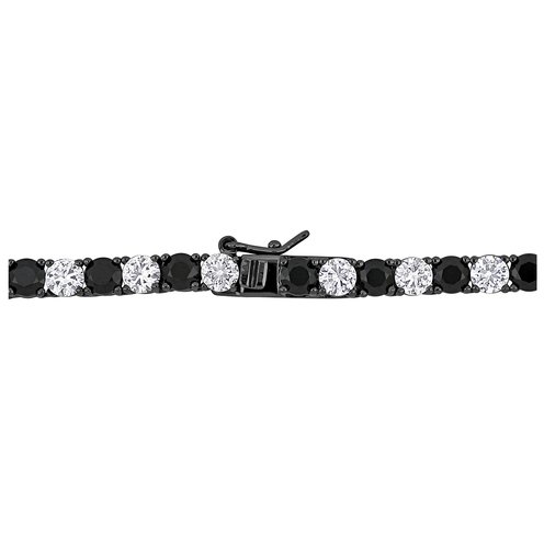 The Men's 40 CT TGW 4mm Round Created Black & White Sapphire Necklace with Box Clasp, a romantic and sophisticated piece from the Men's collection that masterfully blends timeless elegance with contemporary style. This exceptional necklace is expertly crafted in white and black rhodium-plated sterling silver, providing a versatile and unique touch to any gentleman's ensemble. Featuring an exquisite array of 4mm round created black and white sapphires, this necklace boasts a total gem weight of 36 carats. The striking contrast between the captivating black sapphires and the luminous white sapphires creates a perfect harmony of elegance and modern sophistication.