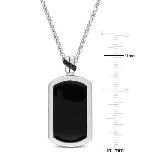 This bold and beautiful hexagon enamel pendant is crafted in luminous black rhodium-plated sterling silver. This stunning necklace features ten round-cut, prong-set black diamonds crowning a metallic rounded hexagon pendant coated with enamel. Enhanced with a polished finish, the pendant is suspended on a 22-inch diamond-cut rolo chain secured with a lobster clasp. A modern accessory for today's woman.