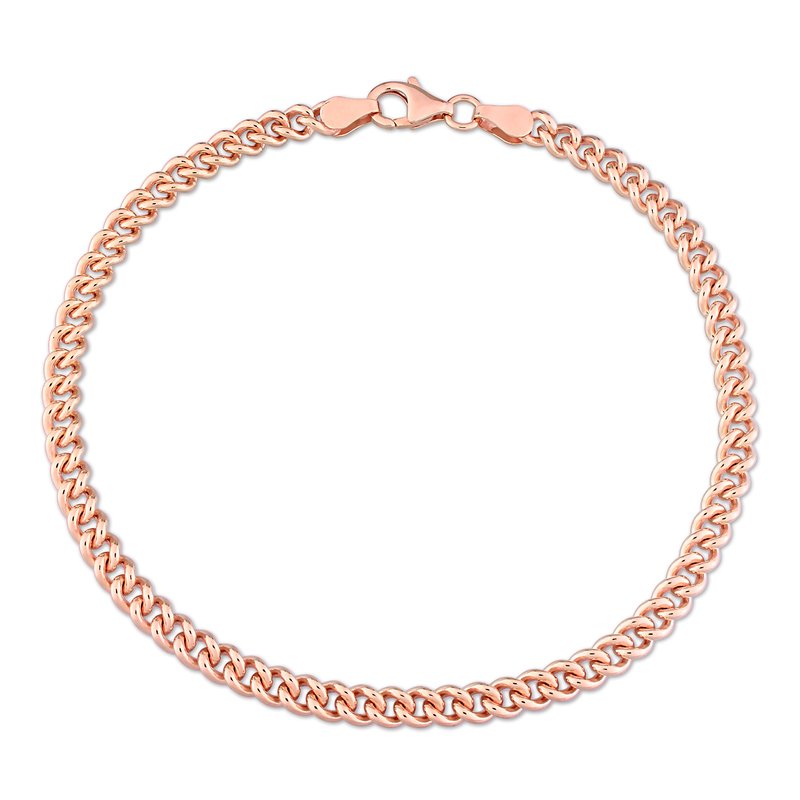 Make her birthday special with this unique curb chain anklet. Mounted in lustrous 18-karat rose gold plated sterling silver, this charming 9-inch anklet is comfortably secured with a lobster clasp. Enhanced with a high polished finish, this captivating anklet is made in Italy and will be her favorite accessory that she shall flaunt at every occasion. Stun her with your stylish choice when you give her this dainty anklet.