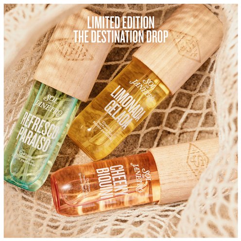 Sol de Janeiro Cheeky Biquíni Hair & Body Perfume Mist is inspired by the playful freedom of Praia do Abricó, Rio’s legendary nude beach, and features notes of apricot nectar, crushed orange blossom & sheer vanilla.