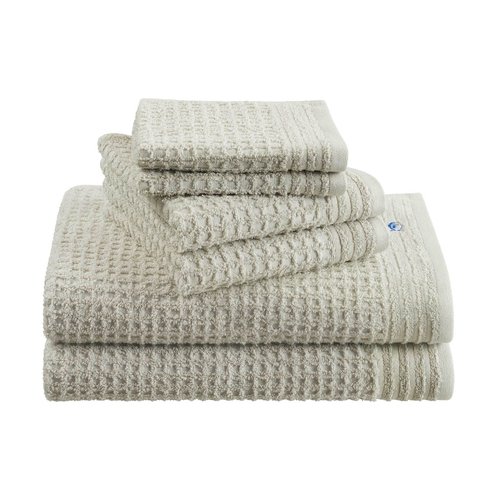 Experience unparalleled comfort post-shower or bath with the Southern Tide Performance 5.0 Textured Six-Piece Towel Set. Meticulously crafted from a blend of 92% Cotton and 8% Polyester, these towels feature a textured waffle weave that is exceptionally soft and remarkably absorbent. Enhanced with proprietary Intelliweave™ technology, they exhibit remarkable durability, minimal linting, and resistance to fading, ensuring they remain bright and fluffy even after countless uses and washes. Finished with timeless woven border insets and the iconic embroidered Skipjack, Southern Tide's signature emblem, the bath towels and hand towels in the Southern Tide Performance 5.0 Towel Collection have a modern look. A soft palette of Gray, Blue, and White, this six-piece set includes two bath towels, two hand towels, and two wash cloths, providing you with everything you need for a luxurious bathing experience.