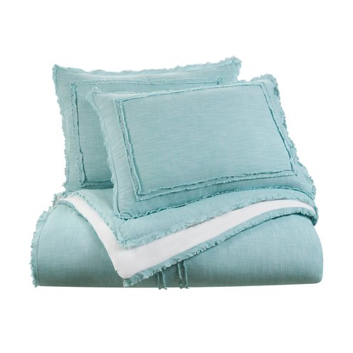 Experience the unique softness and comfort of the Bayview Comforter set. Crafted of a soft washed cotton chambray, its seaglass palette is peaceful and serene layering well with the Nautical Mile Quilt for added warmth. A delicate frayed trim adds a playful finishing touch. With Southern Tide, the South is more than just a location, it's a state of mind. The label is all about the classic American lifestyle, always bringing a piece of the South wherever it goes. It appeals to those with an adventurous spirit, an affection for the coast, and an appreciation for classic design.