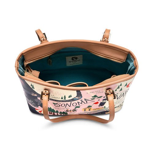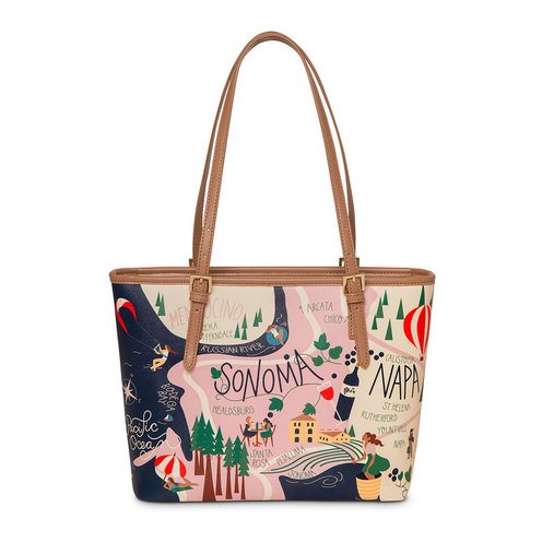 Our Small Tote is a petite-sized, grab & go version of our larger Greetings From Tote. It's the perfect companion for a lunch date or trip to the market. It features a top zip closure, roomy interior plus three slip pockets and one zip pocket. The cotton canvas lining is brightly colored for fun, yet is also sturdy.