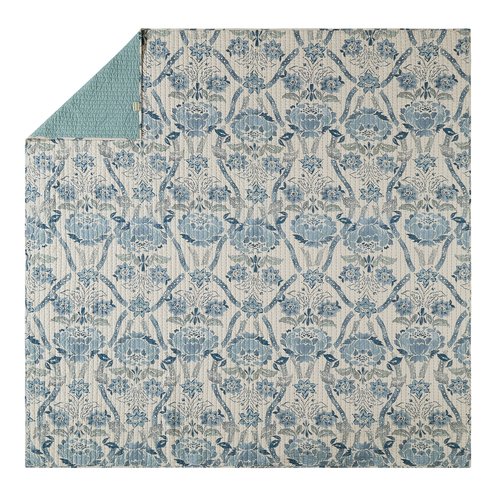 The Mystic Moss Quilt Set showcases a detailed damask pattern in soothing bluish-green tones on a soft neutral ground, bringing a touch of sophistication to your space. The set includes two solid shams with scalloped edges, and the quilt reverses to the same solid color for versatile styling. Crafted from breathable 100% cotton fabric and fill, this set offers natural softness and year-round comfort. Machine washable for easy care, it's as practical as it is beautiful.