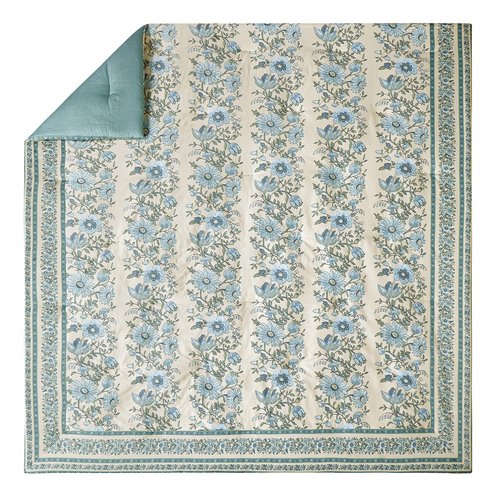 Transform your bedroom into a serene retreat with the Mystic Moss Floral Comforter Set. Showcasing a graceful floral motif in calming blue-green tones, this 3-piece set is finished with a charming decorative border. Crafted from luxurious 300-thread count cotton sateen, the comforter offers a soft, smooth feel and is filled with lofty polyester for year-round comfort. The reverse side features a texture-inspired print, giving you two stylish looks in one. Matching shams complete the ensemble for a polished finish.
