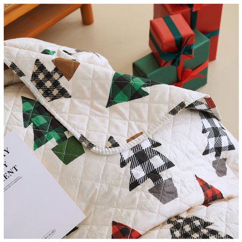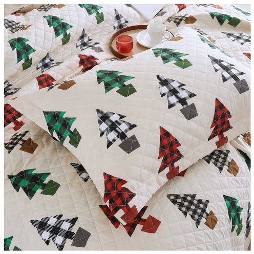 Spirit Linen Holiday Checkered Tree Quilt Set