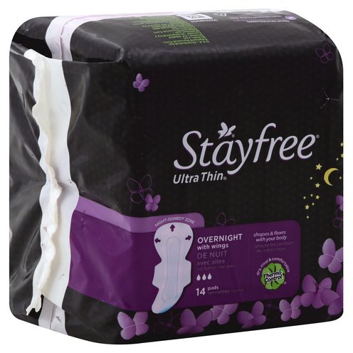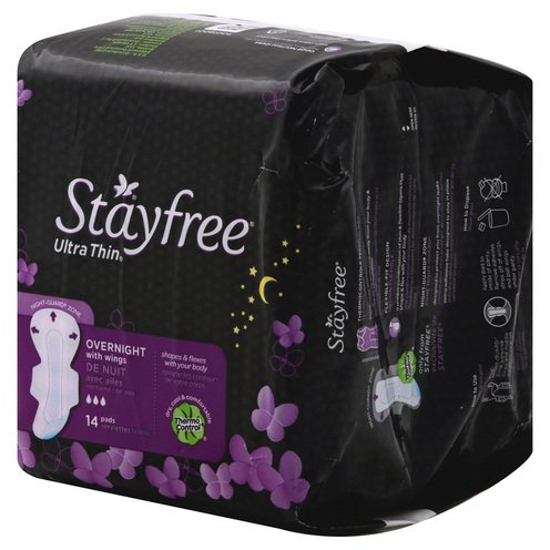 Pads, Ultra Thin, with Wings, Overnight. Shapes & flexes with your body. Night-guard zone.