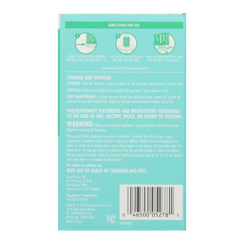 STEM Flying Insect Zapper is a compact, portable option for attracting and zapping fruit flies, house flies and mosquitoes. Use it to control pests on camping trips, RV outings, or patio grilling sessions. It's also great for use around the house in the garage, sunroom, or pantry. With a weather-proof, rechargeable battery, it uses 360-degree blue light to lure bugs, no electrical outlet needed. Enjoy up to 12 hours of bug control per charge. Designed to be people and pet-friendly when used as directed, it operates with odor-free UV technology, trapping pests without chemical insecticides. STEM Zapper works most e?ciently in dark spaces or at night. Let this easy-to-use device handle pests for you no touching bugs or sticky traps.