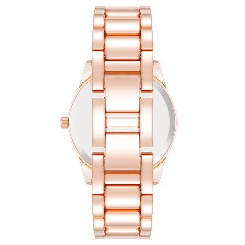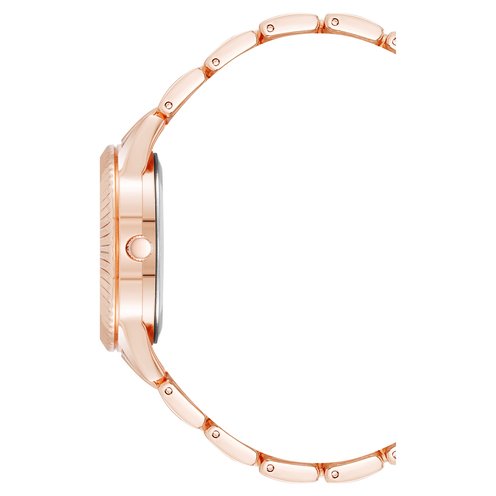 Steve Madden Women's Bracelet Watch with the textured bezel and mineral crystal lens you're sure to be the talk of the party.