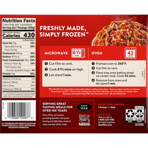 Stouffer's Classic Spaghetti With Meat Sauce Dinner, 12oz | Frozen Meals | Food, Snacks & Candy - Shop Your Navy Exchange - Official Site