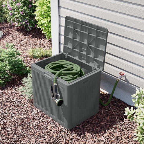 Hose storage has never looked better. Keep your outdoor space in tip-top shape with the Suncast® Expandable Hose Hideaway, a decorative storage solution designed to hold up to 200 feet of expandable or lightweight hose. A modern reeded design blends seamlessly with any home décor while keeping your hose concealed and protected. The built-in opening allows for easy connection to your water supply, and drainage holes at the bottom prevent water buildup. Crafted from durable weather- resistant resin, this hideaway box is built to last and requires minimal maintenance. And setup is a breeze with easy, tool-free assembly. Proudly made in the USA, the Flex Hose Hideaway Box is the perfect combination of function and style for your garden or patio.