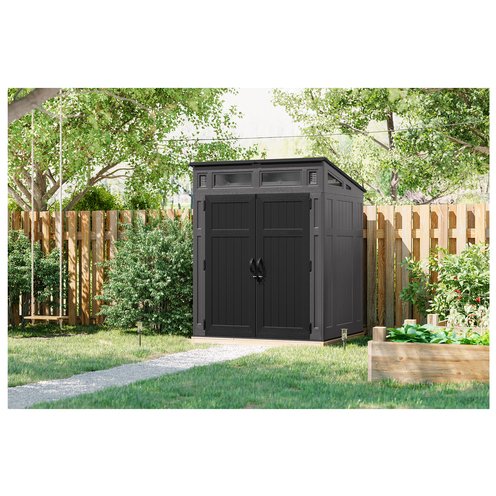 A combination of strength and storage, the 6 ft. x 5 ft. Modernist® Storage Shed by Suncast® is the perfect fit for anyone looking to upgrade their storage capabilities. Featuring a Single Tool Hook accessory and 200 cubic feet of storage space this shed is ideal for storing all your outdoor equipment. A steel frame structure and multi-wall resin panels provide maximum strength and durability, even under heavy roof snow loads. Sturdy double doors allow you to access your items easily, and the doors are pad-lock ready for added security (lock not included). Large transom windows allow for natural light making it easy to find what you need. This shed is beautiful, strong and built to withstand the elements all year long.