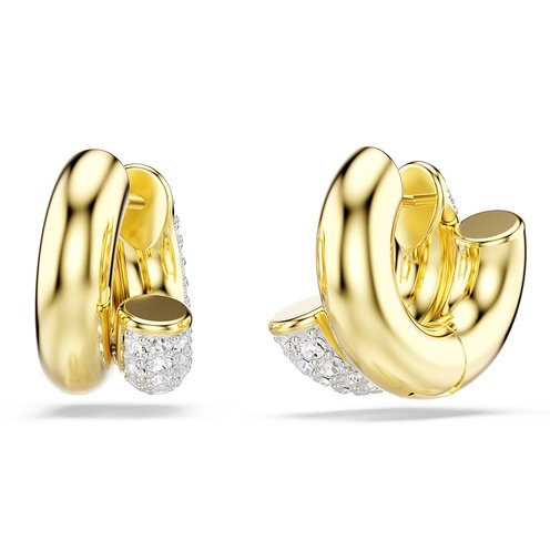 Embodying the industrial style of Dextera, these tubular earrings combine a gleaming gold-tone plated surface with a pavé of clear crystals on one side. An additional spring plate mechanism ensures each piece is easy to take on and off. Wear these mini hoops as a distinctive choice for your day to night styling. Since 1895, Swarovski has been committed to philanthropy and sustainability, continuously investing to preserve the environment and to positively impact global and local communities. In 2020, we initiated the largest transformation ever for our business, by fully integrating sustainability within our entire Swarovski Crystal Business. This allowed us to prepare for the challenges of the future and to strengthen our commitment towards our sustainability vision and company mission.