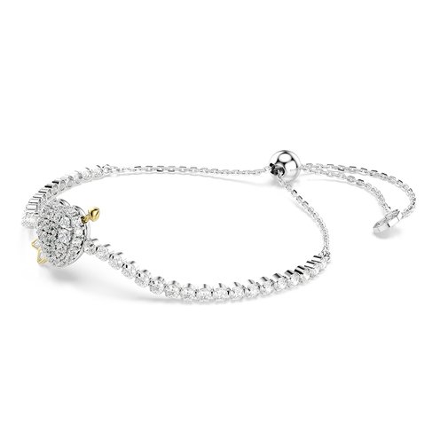 True love meets radiant light in this Swarovski bracelet from the Idyllia family. The soft chain is lined with round-cut Swarovski Zirconia in a gold-tone plated setting, while at the center, a glittering heart motif is pierced by Cupid's arrow. Adjust the fit to your size using the sliding closure, and pair the bracelet with other matching jewelry from the same romance-inspired range. Since 1895, Swarovski has been committed to philanthropy and sustainability, continuously investing to preserve the environment and to positively impact global and local communities. In 2020, we initiated the largest transformation ever for our business, by fully integrating sustainability within our entire Swarovski Crystal Business. This allowed us to prepare for the challenges of the future and to strengthen our commitment towards our sustainability vision and company mission.