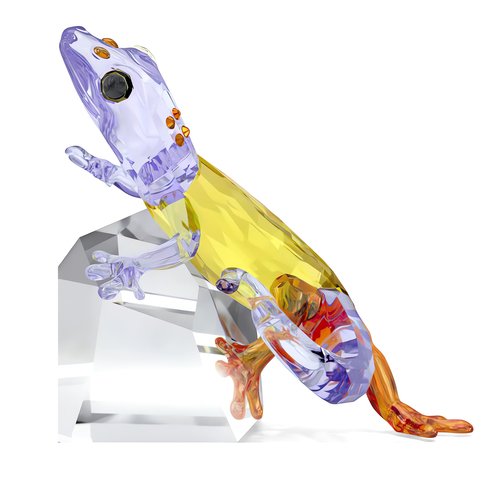 Emerging from the shade and climbing onto a rock to bask in the sun, this inquisitive gecko reveals his glorious colors to the world. The design is crafted with 437 facets and 6 individual crystals, and showcases a variety of warm tones including yellow, orange, and lavender. Place it anywhere in your home as a centerpiece of joy. Decoration object. Not a toy. Not suitable for children under 15.