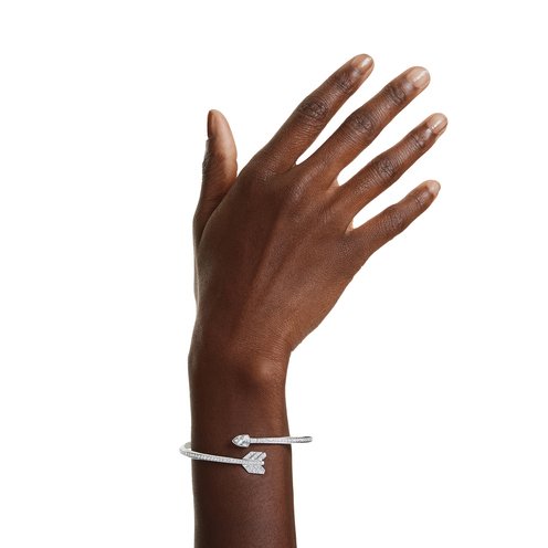 Wrap your style in romance with this rhodium plated bangle inspired by Cupid's arrow. The design is embellished with clear crystals for maximum radiance, while a hinge at the back makes it easy to take on and off. A unique accessory that will strike any look with love. Since 1895, Swarovski has been committed to philanthropy and sustainability, continuously investing to preserve the environment and to positively impact global and local communities. In 2020, we initiated the largest transformation ever for our business, by fully integrating sustainability within our entire Swarovski Crystal Business. This allowed us to prepare for the challenges of the future and to strengthen our commitment towards our sustainability vision and company mission.