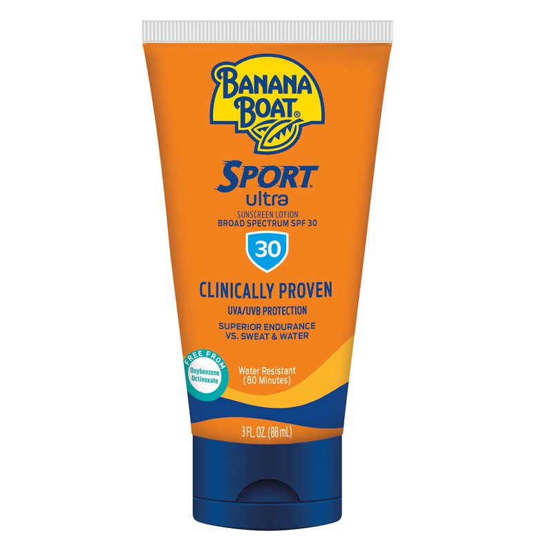 Great for your active lifestyle! Banana Boat Sport Ultra Sunscreen Lotion provides powerful, free from oxybenzone protection that absorbs quickly, is non-greasy and won't run into your eyes. This lightweight SPF 30 sunscreen lotion is designed especially for sport enthusiasts and other active individuals who need sport-strength sun protection that doesn’t play around! Banana Boat Sport Ultra Sunscreen Lotion has superior endurance versus sweat and water—it lasts as long as the fun does*! *Reapply this safe and effective broad spectrum UVA and UVB protection as directed on the product label. Protect the fun on earth with Banana Boat!