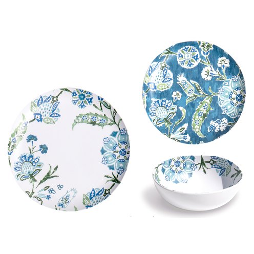 Durable break resistant melamine in a bright and cheery mix and match design.