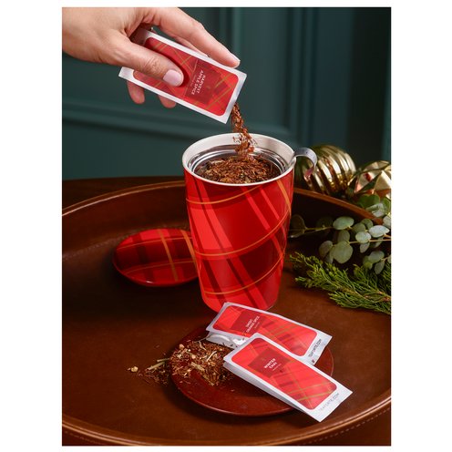 Our innovative lidded ceramic cup features an integrated stainless steel infuser for loose tea. Double-walled design keeps each 12-ounce steep hot.