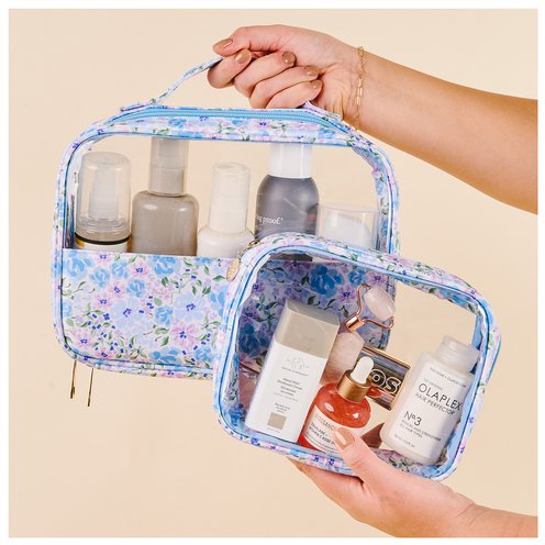 Stay organized and stylish with our Clearly Chic Cosmetic Bag Set! With a sleek clear lining for quick visibility, this set includes two sizes to fit all your beauty must-haves. Whether it's your makeup, toiletries, or daily essentials, these lightweight and portable bags are designed to keep you stylishly organized. The wipeable surface makes cleanup a breeze, where both bags will keep your items neat and easy to access, wherever life takes you!