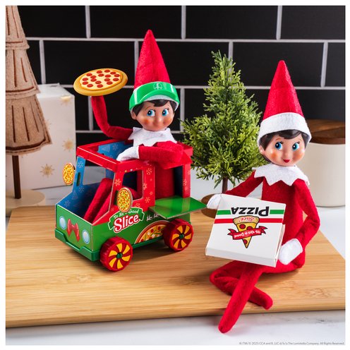 Merry Christmas to all and to all a good slice! Your elf delivers supreme joy in this polar pizza food truck. A delightful way to announce a family pizza night, this set of elf props comes with all they'll need - including an elf-size pizza pie - to join in the fun.