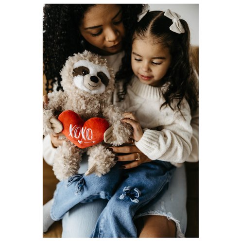 Hanging out with this sloth plush toy with shaggy tan fur and a giant smile with a heart to match will make every day special.