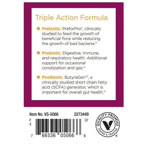 Women’s Once Daily Probiotic from ProBioCare® is a triple-action formula combining 100 billion CFU of probiotics, with prebiotics and postbiotics, to promote digestive, immune, respiratory, vaginal, and skin health. Each capsule is acid-resistant to ensure these clinically studied strains are protected from the harsh environment of the stomach, so that they can colonize in the intestinal tract.