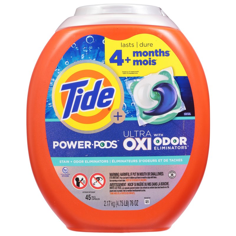 Since Tide Power PODS Ultra OXI bring cleaning and odor-fighting together in one, you get drop-in-and-walk-away convenience with a trusted Tide clean every time.