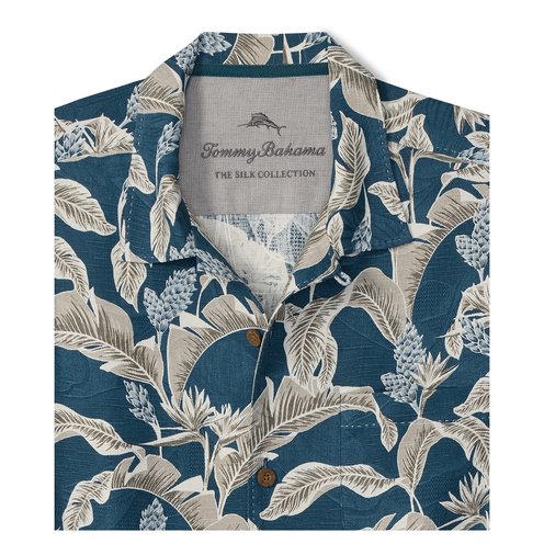 Show off a cool and chic look at the next vacation or casual day out wearing Tommy Bahama® Midnight Palms Shirt. This short-sleeve camp shirt is crafted from jacquard silk for a luxurious touch of comfort.