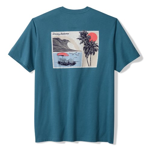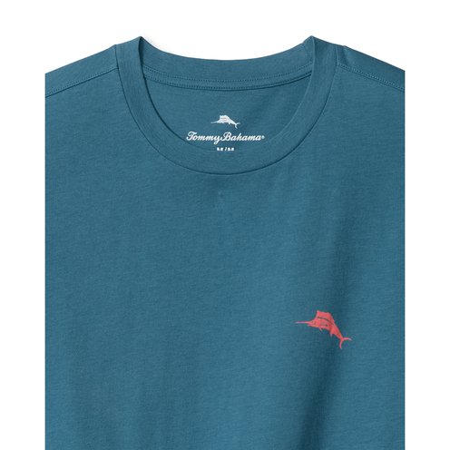 Solid short-sleeve crewneck with a ribbed neckband and back panel graphic.