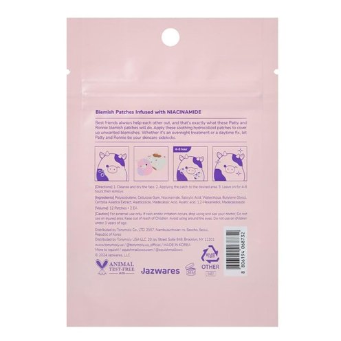 Best friends always help each other out, and that's exactly what these Patty and Ronnie blemish patches will do. Apply these soothing hydrocolloid patches to cover up unwanted blemishes. Whether it's an overnight treatment or a daytime fix, let Patty and Ronnie be your skincare sidekicks.