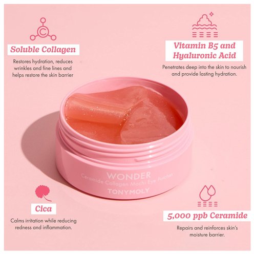The formula is packed with powerhouse ingredients like Ceramides, Collagen, Niacinamide, and Centella Asiatica (Cica) Extract to restore your skin barrier while reducing dark circles and fine lines. Designed to refresh, hydrate, and rejuvenate delicate under-eye skin, this formula effectively treats eye bags.Your skin will be as bouncy, hydrated, and soft as a mochi in just 15 minutes! 30 pairs / 60 patches + spatula.
