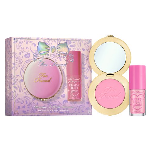 The set you’ve been dreaming about! Perfect for gifting and getting, this must-have set includes products you love in shades you can’t resist. Too Faced Cloud Crush Blurring Blush is paired with an exclusive, limited-edition shade of Too Faced Kissing Jelly Lip Oil Gloss.