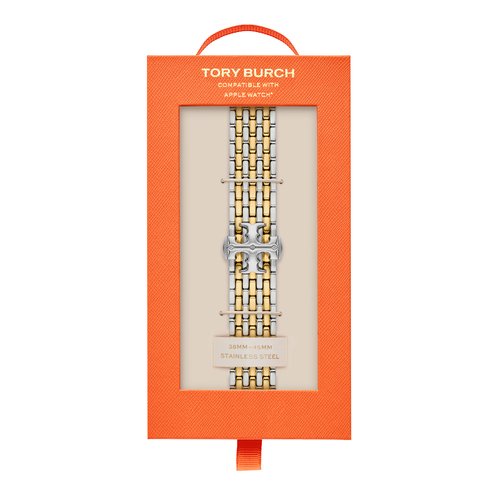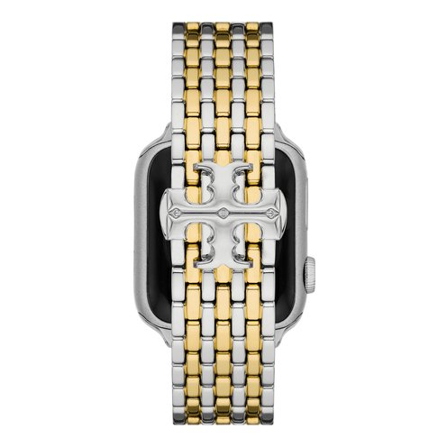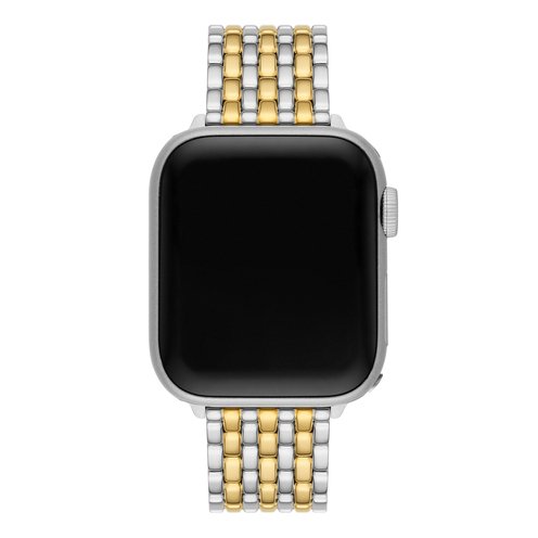 Made exclusively for your Apple Watch®, the Eleanor band features a stainless steel band and Double T lugs. Designed to sit comfortably on your wrist, it is perfect for everyday wear. To attach, push the quick-release button on the back of the watch to slide out and replace the existing band. Compatible with Apple Watch® Series 1 through 10. Designed for 38/40mm/41mm case sizes; Additional end connectors included to fit more sizes, 42-46mm.