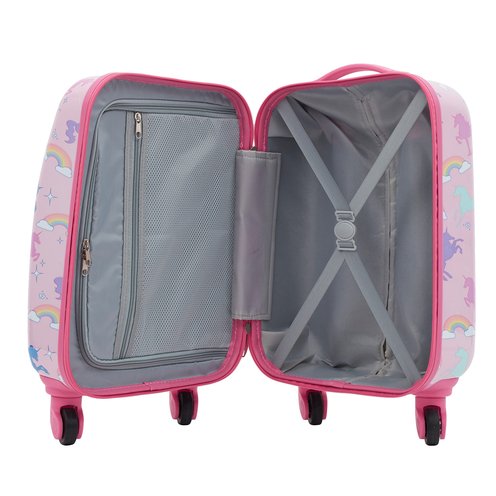 Travelers Club Kids 5-Piece Luggage set is perfect for a short weekend trip, daycare, school and much more. The set includes an 18" Hardside Carry-On that includes spinner wheels, a 15" backpack, a 10" lunchbag, a neck pillow, and a luggage tag. The carry on has a fully-lined interior with pockets. The backpack and lunchbag include side mesh pockets for water bottles.