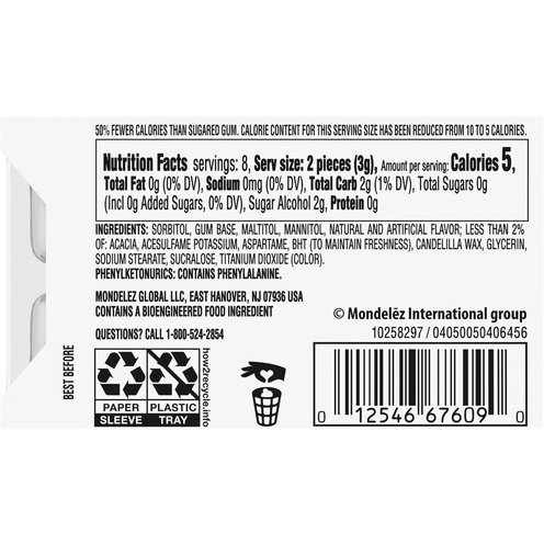 Trident White Peppermint Sugar Free Gum brings sparkle to your smile by whitening teeth and preventing stains. Each piece of chewing gum is easy to pop in your mouth and contains 35% fewer calories than sugared gum. Chewing two pieces of this peppermint gum at least four times per day after meals helps remove and prevent stains. This mint gum is easy to stash in your bag and take on-the-go.