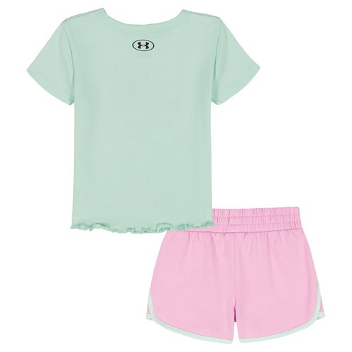 Built for every active movement and set together for style, a soft rib baby tee is paired with French terry shorts in relaxed comfort.
