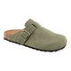 Step into effortless comfort with the Sawyer Slip-On Clog. Designed for easy wear and all-day support, this classic mule features a soft, velvety black upper that is both stylish and durable. The shoe is built upon a contoured footbed with a natural cork base, providing excellent arch support and shock absorption that molds to your foot over time. A sturdy, adjustable silver-tone buckle closure allows you to customize the fit for maximum security and comfort.