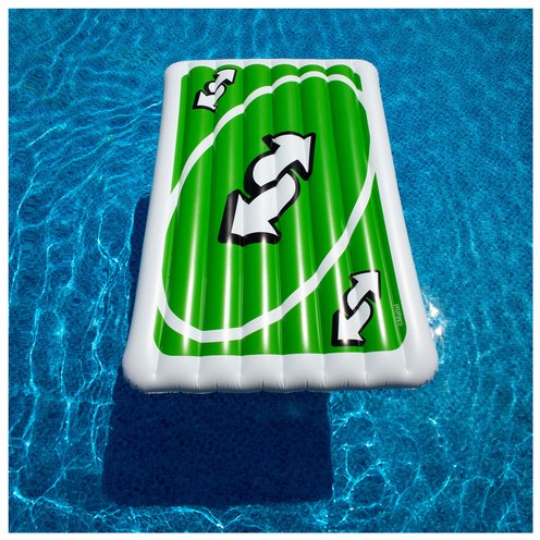 Float into summer with the Uno™ Pool Float, where fun and games collide! This larger than life inflatable measures an impressive 6 feet tall, featuring the iconic Uno Reverse card on one side and the classic logo on the other—just like a real Uno card! Perfect for lounging or splashing around, this float is the ultimate accessory for pool parties, beach outings, or backyard barbecues. Crafted from durable, high-quality materials, it’s designed to withstand endless summer fun, so you can enjoy countless days of relaxation without worry. Why settle for an ordinary float when you can reverse the game and turn heads, spark conversations, and create unforgettable photo ops? Whether you're soaking up the sun or playing your favorite game with friends, the giant Uno Pool Float is sure to make a splash!