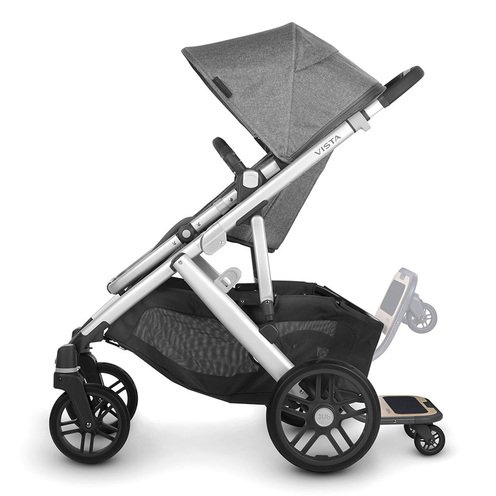 The PiggyBack ride along board easily attaches to the back of your VISTA stroller to allow your toddler to join in the stroll, even when they are too tired to walk on their own.