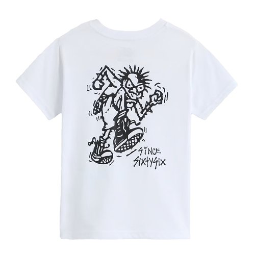 With short sleeves for casual, everyday style, the Little Kids Stomper T-Shirt features artwork that calls out Vans' off the wall history on the front and back. Crafted using carded ringspun fabrication to make your shirt soft and strong, but still super comfortable, the crewneck silhouette offers a classic look.