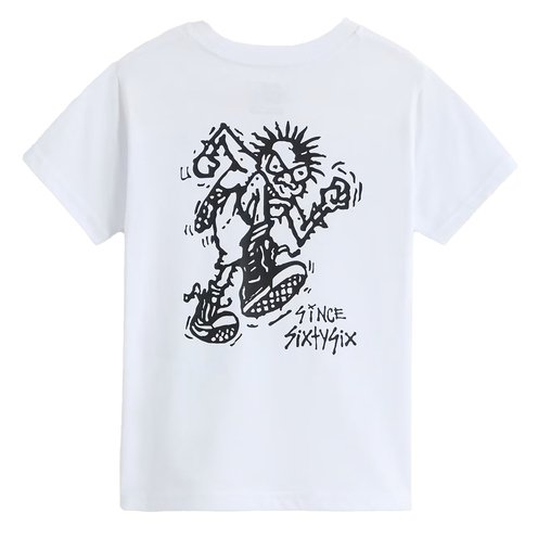 With short sleeves for casual, everyday style, the Little Kids Stomper T-Shirt features artwork that calls out Vans' off the wall history on the front and back. Crafted using carded ringspun fabrication to make your shirt soft and strong, but still super comfortable, the crewneck silhouette offers a classic look.