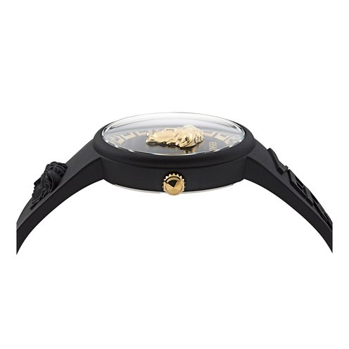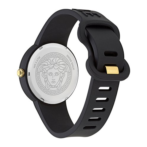 The Pop essence of the new Maison's DNA, is the main inspiration for this collection. The fresh colors toghether with the silicon material create a perfect timepiece, enriched by a IPYG Medusa and greca.. An additional fashion element is the silicon pouch in matching color.