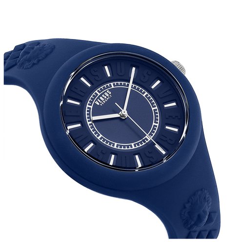 Soft and light in weight, Fire Island is on fire with new colors for a playful and young look. Made entirely from silicone, it draws its inspiration from the confident, lively and urban style that represents Versus Versace's signature: the strap and integrated case cover feature 3D Lion Heads and studs, while the spaces between the indexes are filled with the letters that spell out the brand's name.
