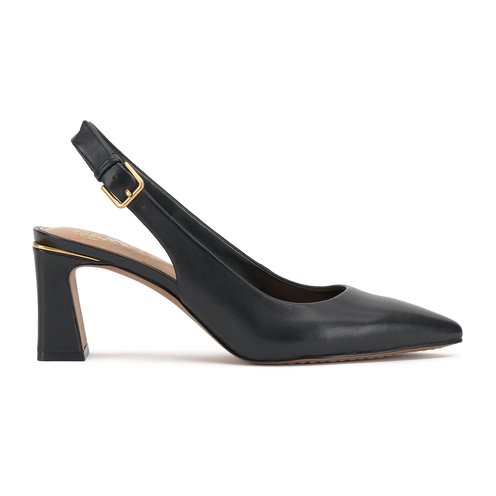 The Hamden updates a timeless point-toe pump with a slender metal rand and architectural covered heel. Crafted of leather, the mid-height pump stays put thanks to a slingback strap with a panel of stretch goring. Wear the forever-fashionable style to work with a printed shift or for date night in with ribbed cords.