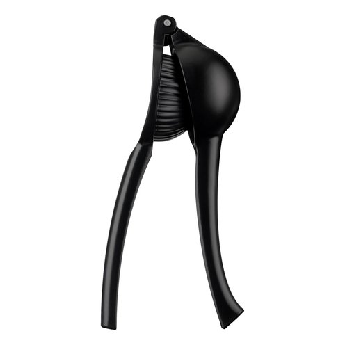 Turn citrus into a statement. The matte finish of this Black Citrus Press by Viski evokes sturdy industrialism while looking refined and sleek on a home bar cart or countertop. Effortless citrus juicing will upgrade your bar game. Don't rely on bottled lime or lemon juice; they lack that ephemeral fresh flavor that takes cocktails from good to great. Taste the difference in your next whiskey sour, classic gin gimlet, daiquiri, mojito or Moscow mule. Sized for smaller citrus including lemons and limes, the Black Citrus Press by Viski is a functional bar accessory that looks as good as the drinks you make with it.
