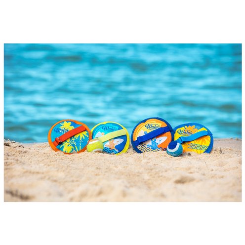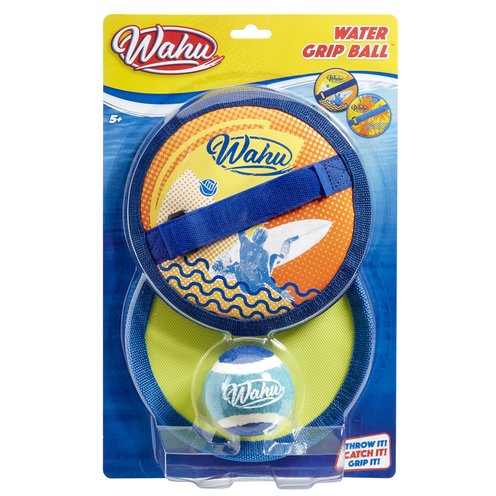 It's the classic game of velcro catch like you've never seen with Wahu Water Grip Ball! Designed with 100% waterproof, flexible neoprene to provide exceptional performance in, on or around the water. The flexible mitts conform to your hand and have adjustable hand straps that work for kids and adults, and both the mitts and ball float! The ball also has a specialized grip for easy catching, even when wet! Perfect for the pool, beach, river, lake, backyard or park. Includes 2 Mitts with a 7" (17.8cm) diameter and 1 Ball with a 2.5" (6.4cm) diameter. Recommended for ages 5 and up.