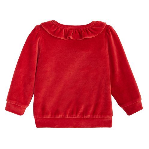 Wanderling Baby Girls' Velour Ruffle Neck Top