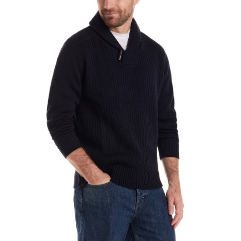 This Shawl Collar Pullover Sweater From Weatherproof Vintage Is A Versatile Piece, With Vertical Stitching And Toggle Embellishment, That Can Be Dressed Up Or Dressed Down Depending On The Occasion.