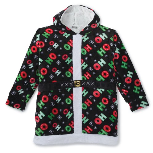An ultra-soft fleece oversized hoodie with a roomy kangaroo pocket and a joyful all-over holiday print, highlighted by a bold 'HO HO HO' design.